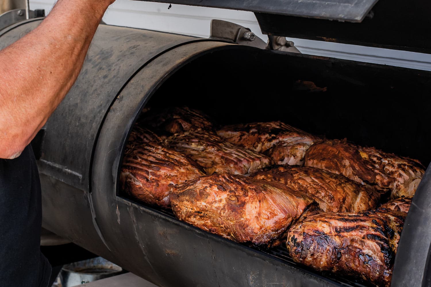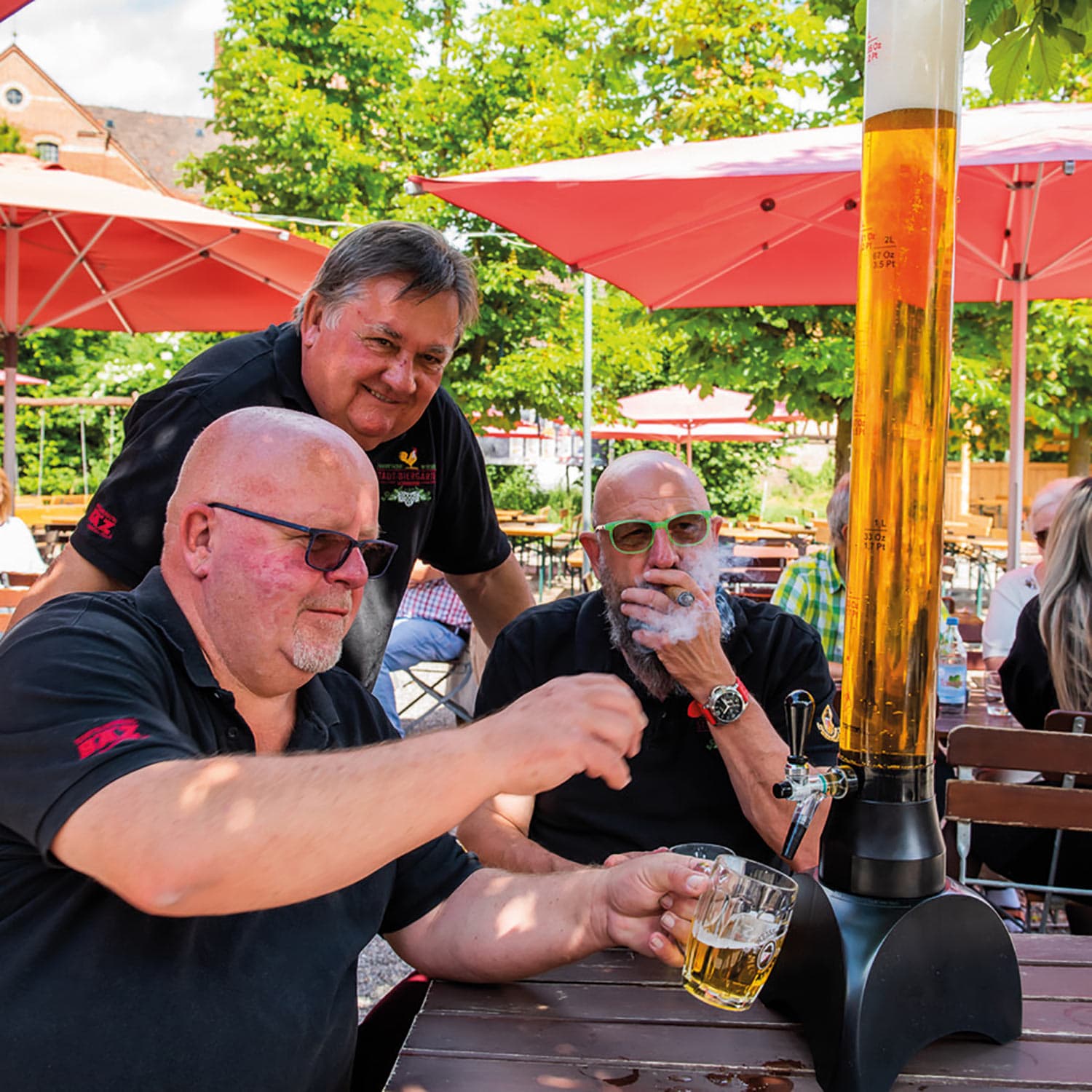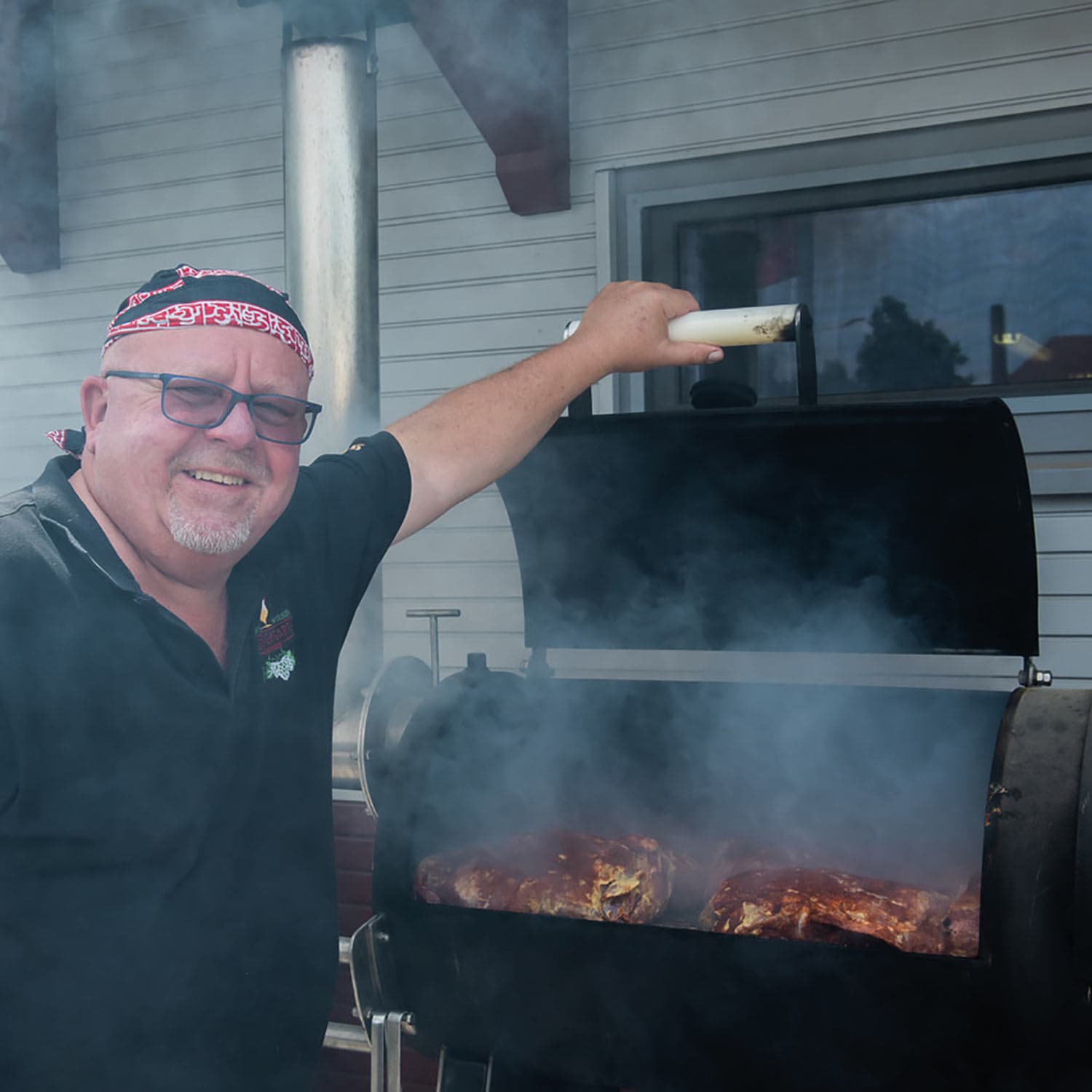 Was manche von euch vielleicht nicht wissen: Volker Ziesel, einer unserer Macher, ist auch Boss der berüchtigten Auftragsgriller-Bande. Seit fast einem Jahrzehnt treibt der grandioseste Griller zwischen Rems und Rio Bravo mit seinem Grill-Team bereits sein Unwesen – auf Firmenfeiern oder privaten Feten. Der Absolvent der ersten Württembergischen Grillschule und Intimkenner der US-Barbecue-Szene lässt diese Erfahrungen natürlich auch im Biergarten mit einfließen. So ist sein Smoker eines der wichtigsten Küchenutensilien. In ihm entstehen Gerichte, die dauerhaft auf unserer Karte stehen (zum Beispiel das Pulled Pork), aber auch Specials zu bestimmten Events (zum Beispiel Spareribs).