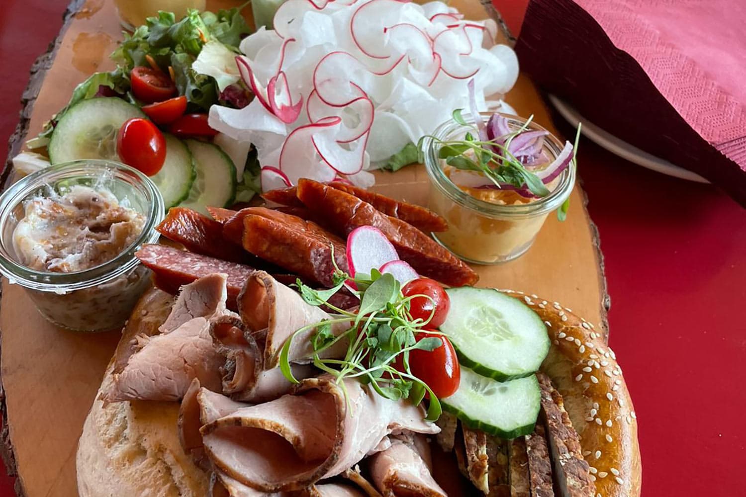 Und auch sonst ist bei uns sehr, sehr vieles hausgemacht. Von den Fleischküchle über die Maultaschen, den Leberkäse, diverse Soßen, Hummus, Kräuterkäse, Grillgemüse, Tellersulz, Dips, Salatsoßen – bis hin zum Eis. Und natürlich unsere vielen Specials, von der Schweinshaxe bis zum Schweinebraten.
