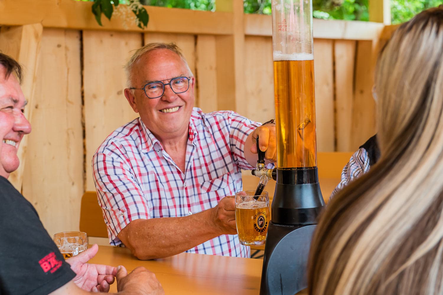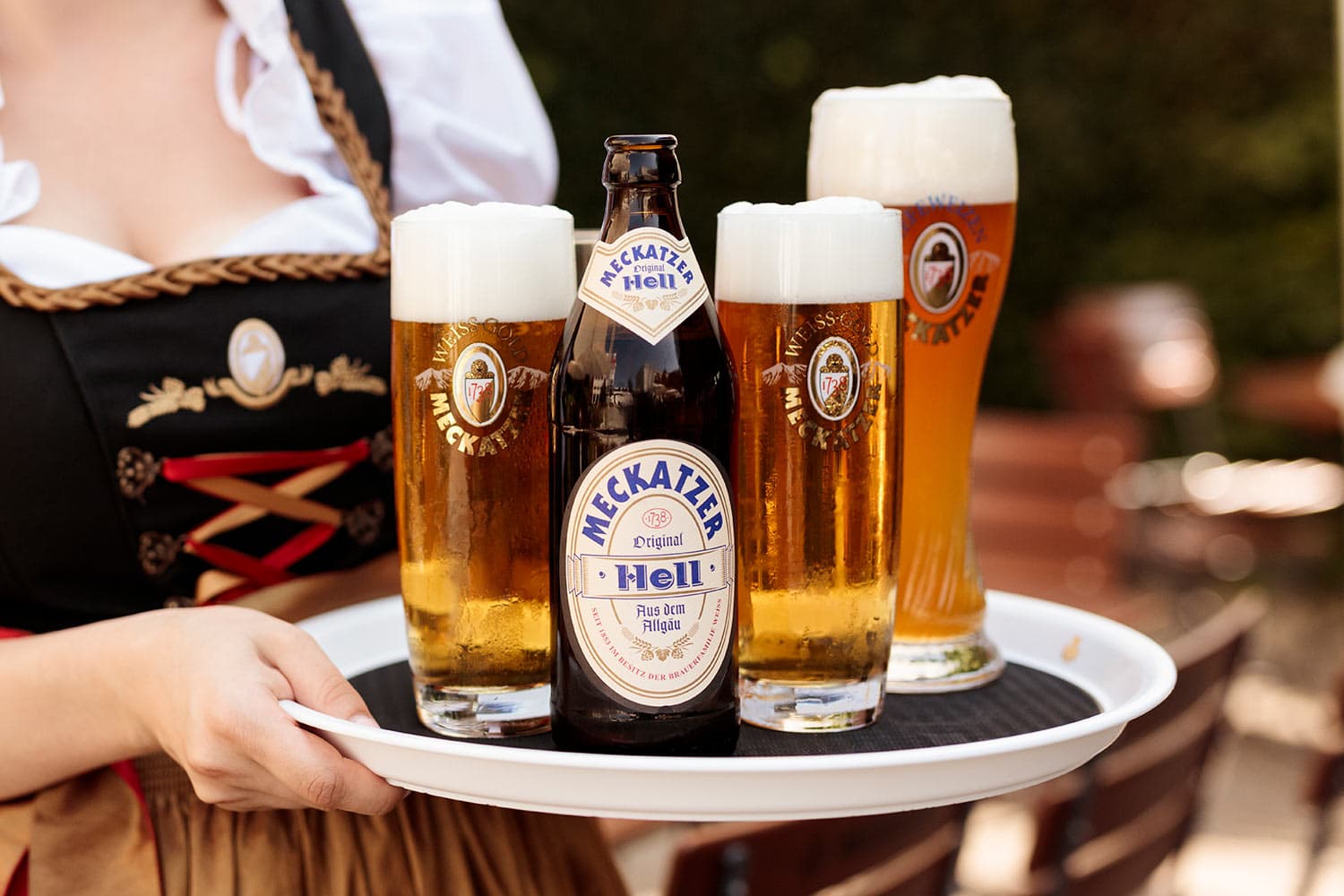 Seien wir ehrlich: Die Qualität eines Biergartens steht und fällt mit der seiner Biere. Deshalb haben wir uns die Wahl nicht leicht gemacht und die Messlatte hoch gelegt. Ein besonderes Bier soll’s sein. Kein Massenbier, aber schon mit gewissem Bekanntheitsgrad. Und natürlich muss es super schmecken. Die gründliche Suche hat sich gelohnt, das Ergebnis kann sich sehen lassen: Die Wahl fiel auf Meckatzer, das Premium-Bier aus dem bayrischen Allgäu. Ein Familienbetrieb, der mit einem besonderen Brauverfahren tolle Biere herstellt. Dazu gesellt sich ein prominenter Nachbar. Beim Kristallweizen haben wir keine geringere Brauerei gewählt als die Erfinderin dieses Biers: die Edelweißbrauerei Farny aus Kißlegg. Prost!